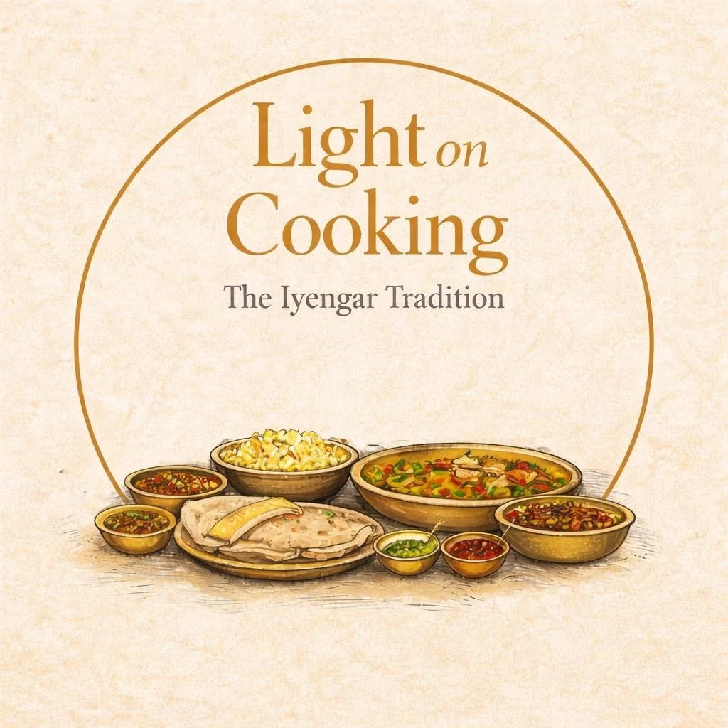 Light on Cooking is an evolving cookbook and oral history project rooted in the living tradition of Iyengar Yoga. Through ongoing conversations with members of the Iyengar family and longtime practitioners, the project is gathering traditional recipes alongside the stories, practices, and daily rhythms that surround them.